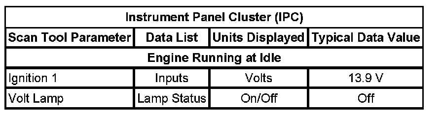Instrument Panel Cluster (IPC) Scan Tool Data List:
