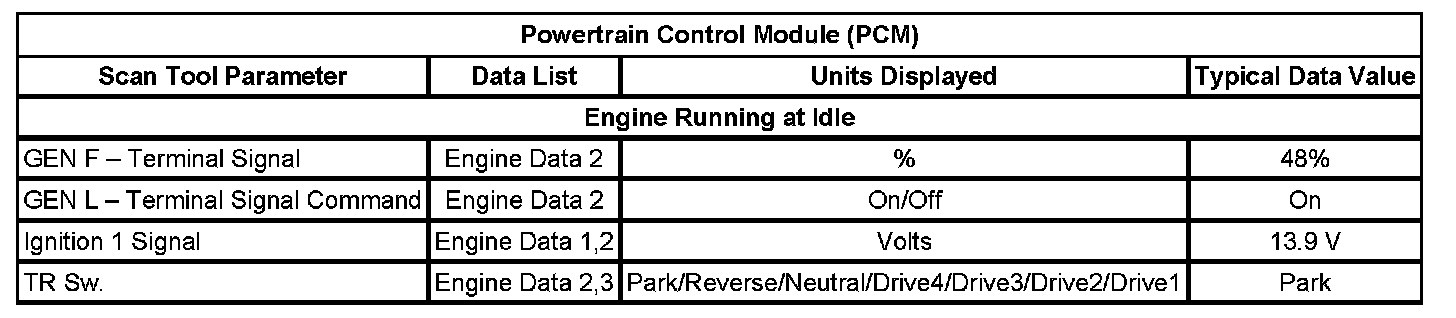 Powertrain Control Module (PCM) Scan Tool Data List: