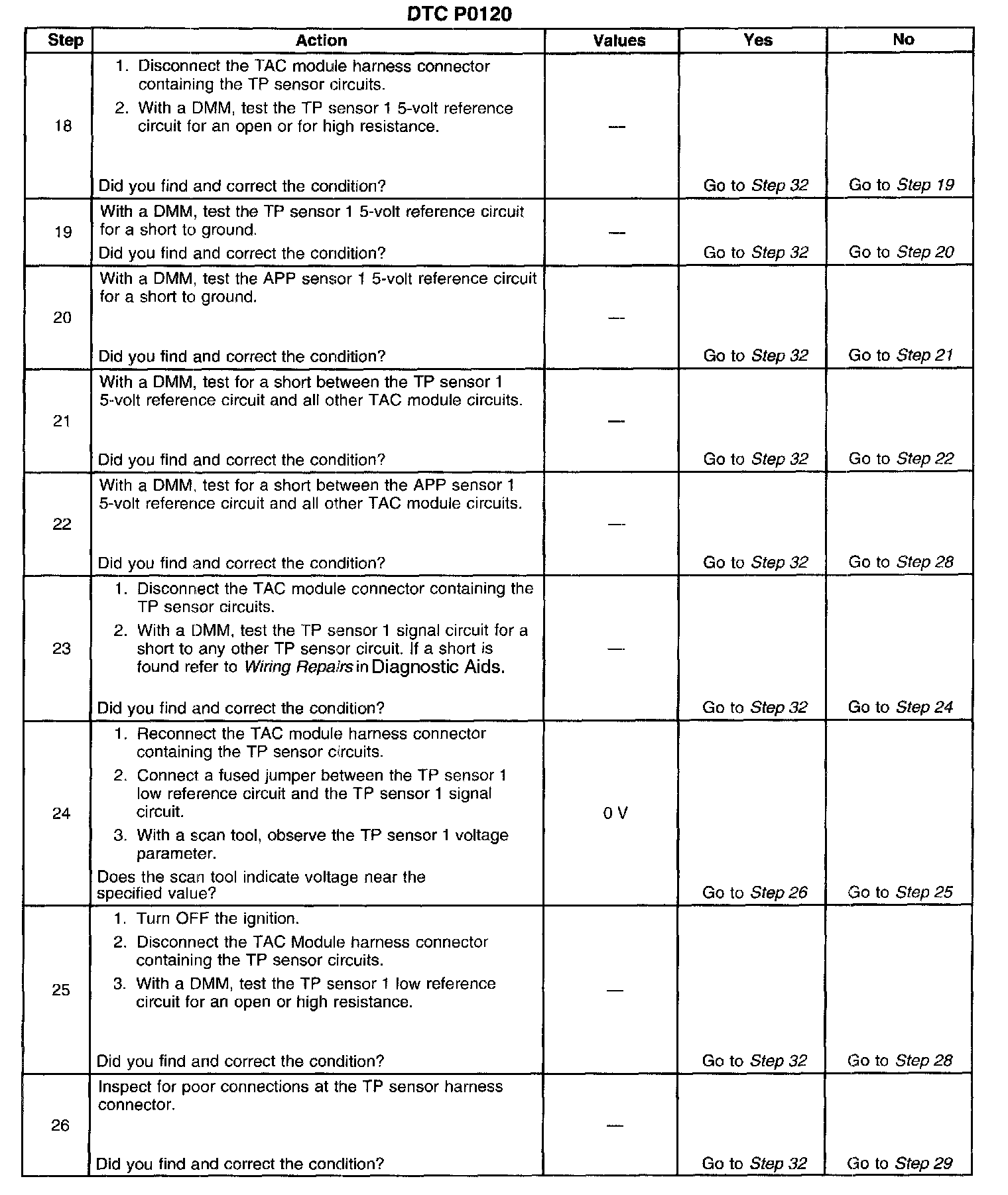 The number below refers to the step number on the diagnostic table.