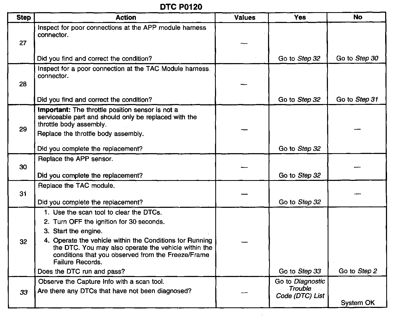33. When the TAC module detects a condition within the TAC System, more than one TAC System related DTC may set. This is due to the many redundant tests that run continuously on this system. Locating and repairing 1 individual condition may correct more than 1 DTC. Disconnecting the components during testing may set additional DTCs. Keep this in mind when reviewing the Capture Info.