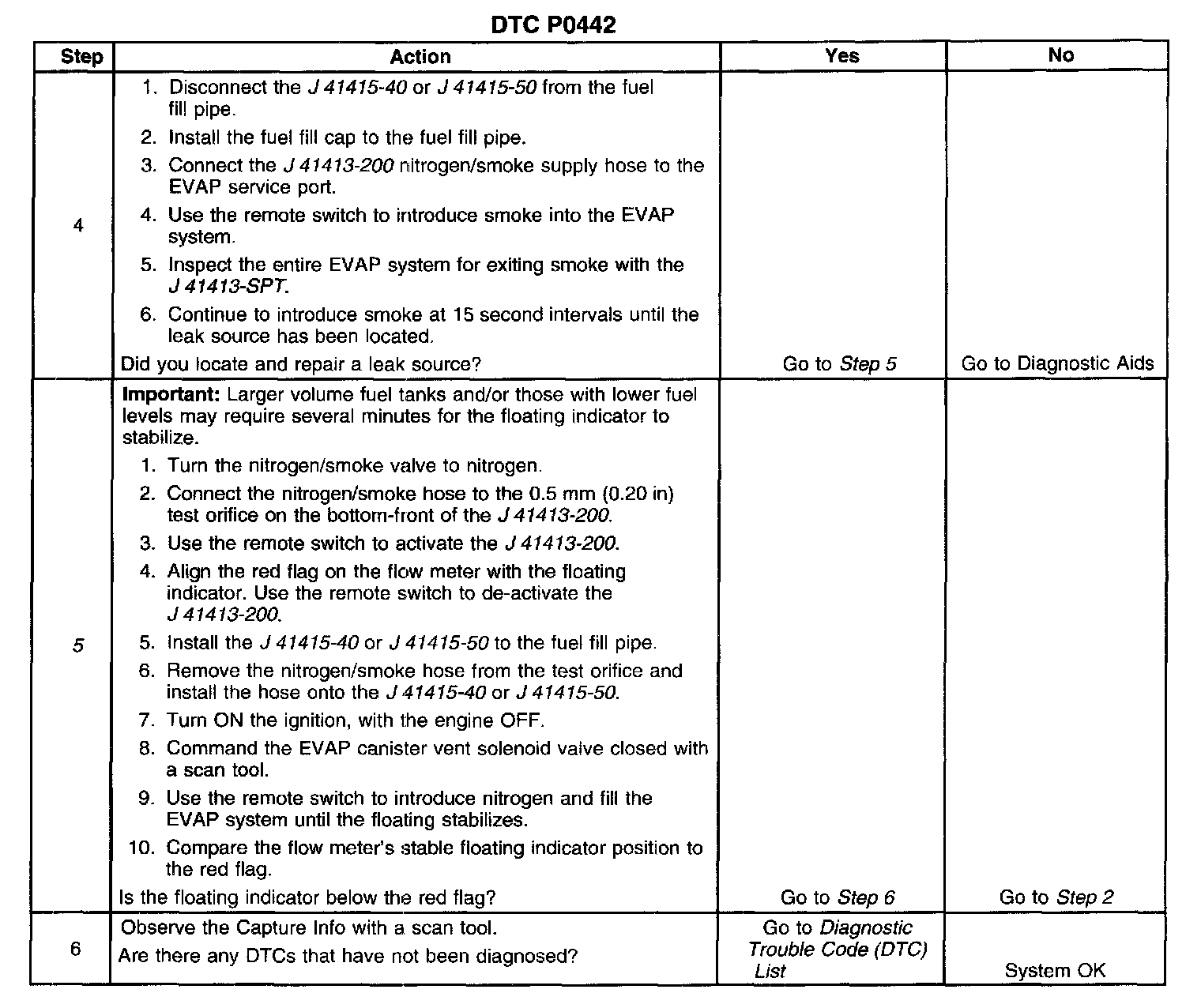 If the control module detects a pressure change less than a calibrated amount, DTC P0442 sets.