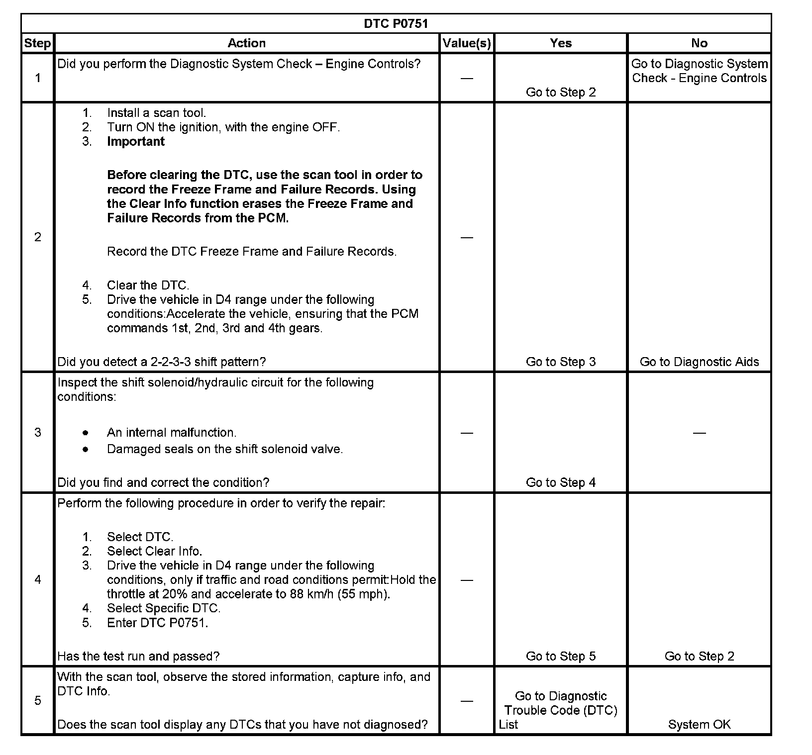 ^ The PCM stores DTC P0751 in PCM history.