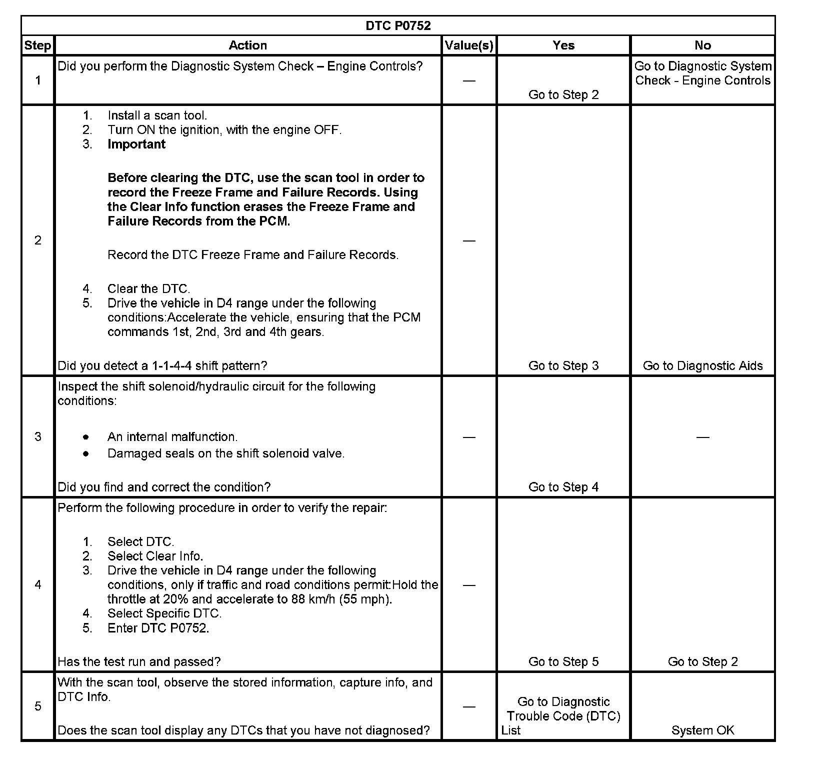DTC P0752Test 1-5: