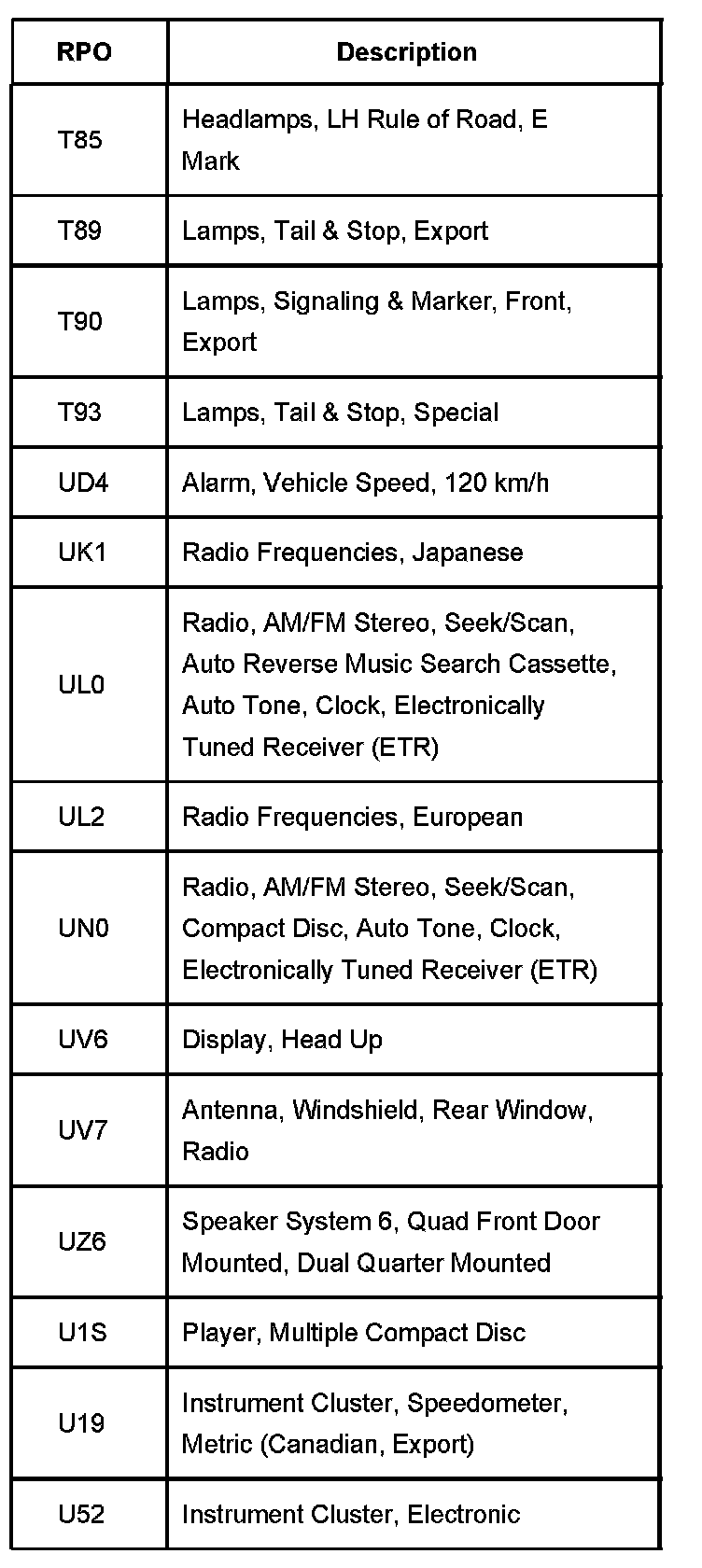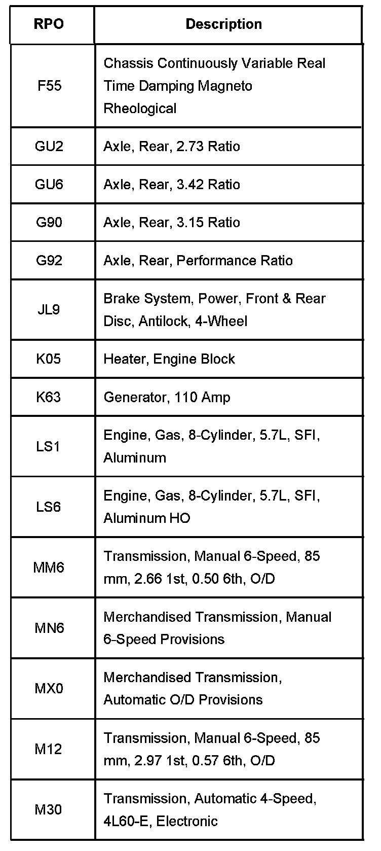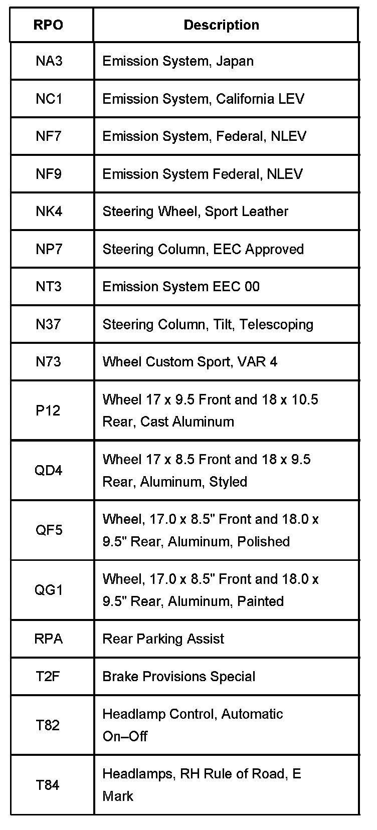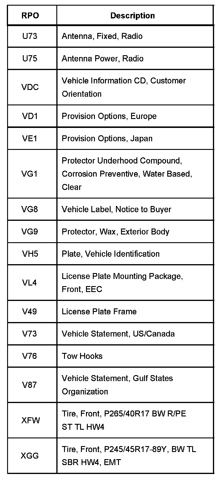 RPO Codes
