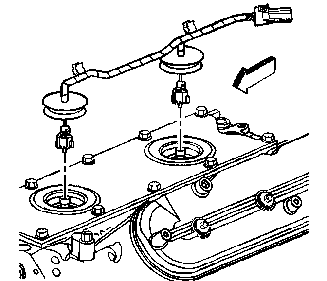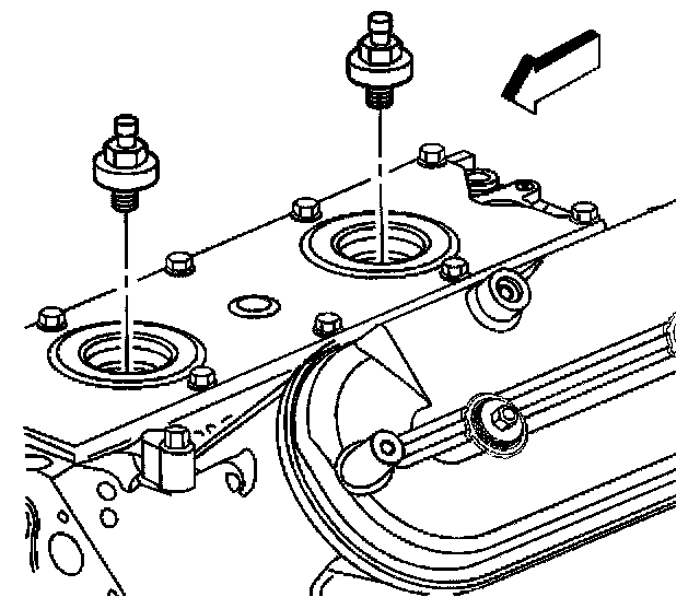 1. Install NEW knock sensor oil seals (1) into the valley cover (2).