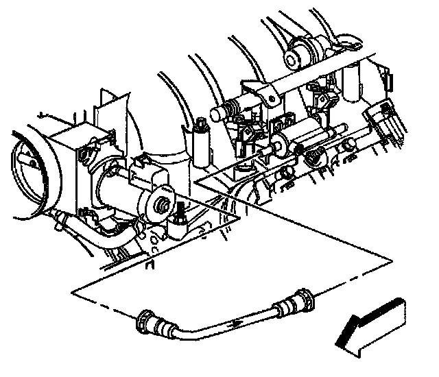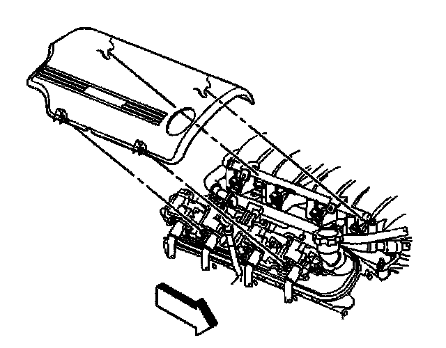Caution: The fuel rail stop bracket must be installed onto the engine assembly. The stop bracket serves as a protective shield for the fuel rail in the event of a vehicle frontal crash. If the fuel rail stop bracket is not installed and the vehicle is involved in a frontal crash, fuel could be sprayed possibly causing a fire and personal injury from burns.
