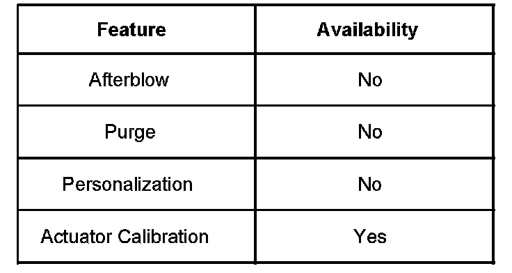 The HVAC control module is a class 2 device that interfaces between the operator and the HVAC system to maintain air temperature and distribution settings. The battery positive voltage circuit provides power that the control module uses for keep alive memory (KAM). If the battery positive voltage circuit loses power, all HVAC DTCs and settings will be erased from KAM. The ignition 3 voltage circuit provides a device on signal. Three integrated potentiometers control mode and air temperature door positions and blower motor speed. The control assembly communicates the mode door position to the vacuum control assembly through 5 solenoid control circuits. The control module supports the features as in the table.