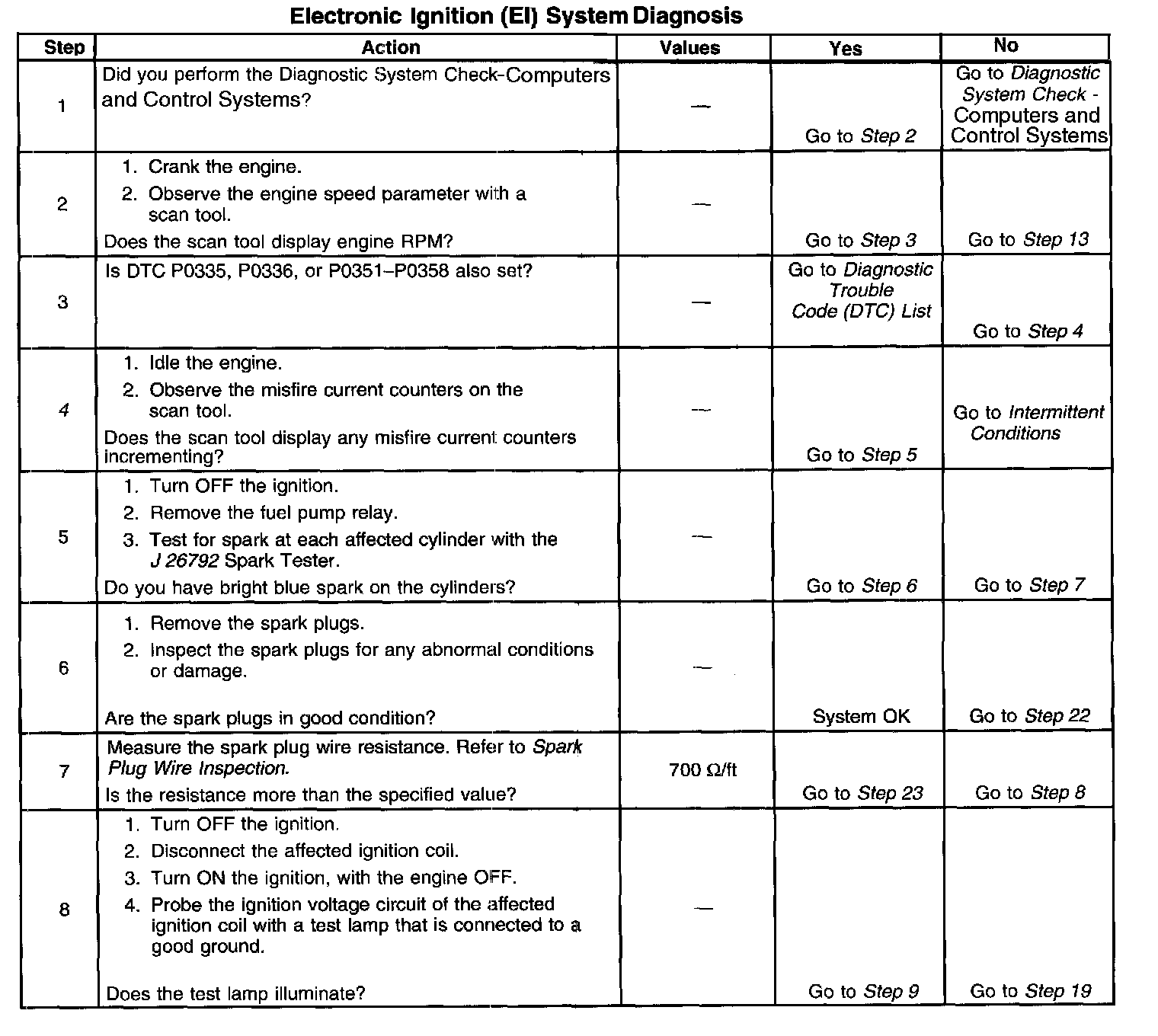 ELECTRONIC IGNITION (EI) SYSTEM DIAGNOSISCIRCUIT DESCRIPTION