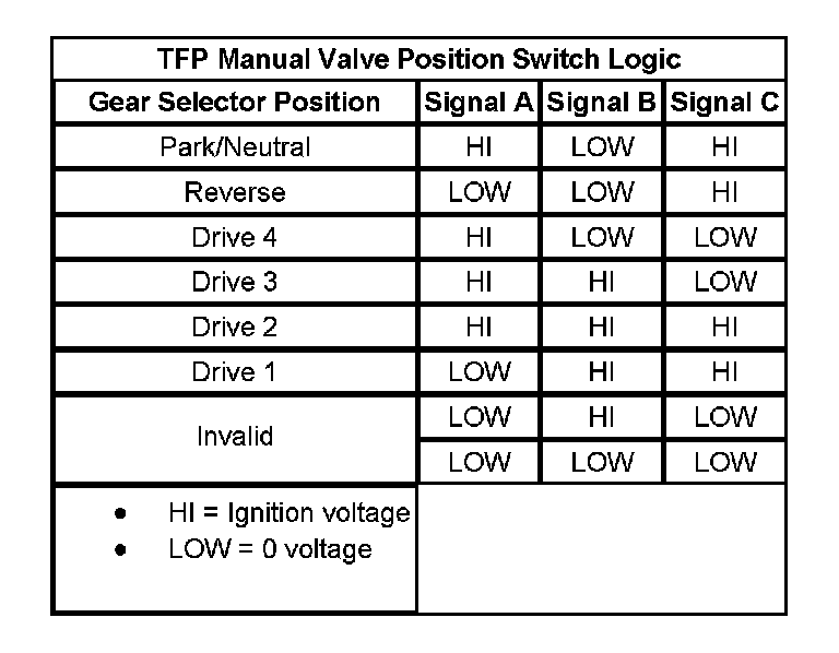 Transmission Fluid Pressure (TFP) Manual Valve Position Switch Logic
