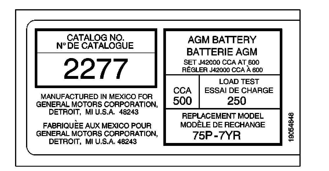 The cold cranking amperage is an indication of the ability of the battery to crank the engine at cold temperatures. The cold cranking amperage rating is the minimum amperage the battery must maintain for 30 seconds at -18°C (0°F) while maintaining at least 7.2 volts. Refer to Battery Usage for the cold cranking amperage rating for this vehicle.