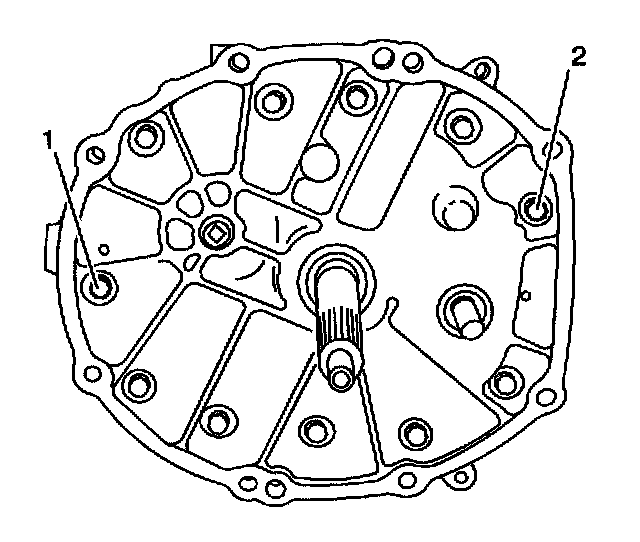 1. Remove the adapter plate bolts (1) and (2).