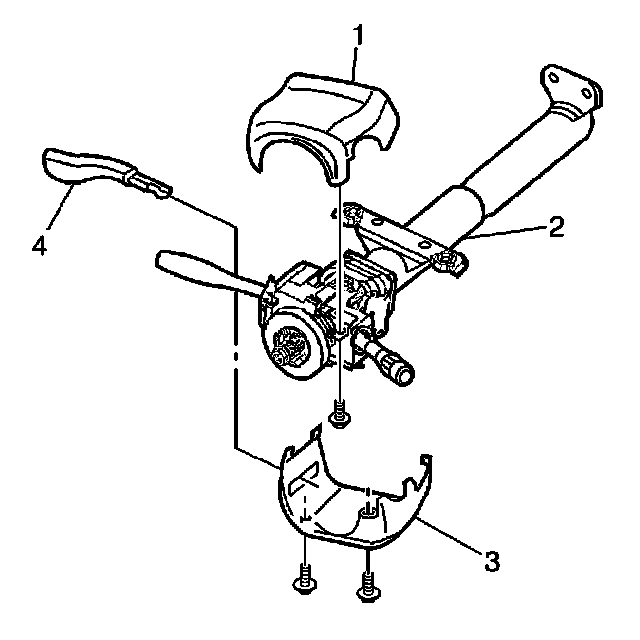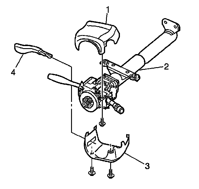 3. Separate and remove the upper (1) and the lower (3) steering column covers.