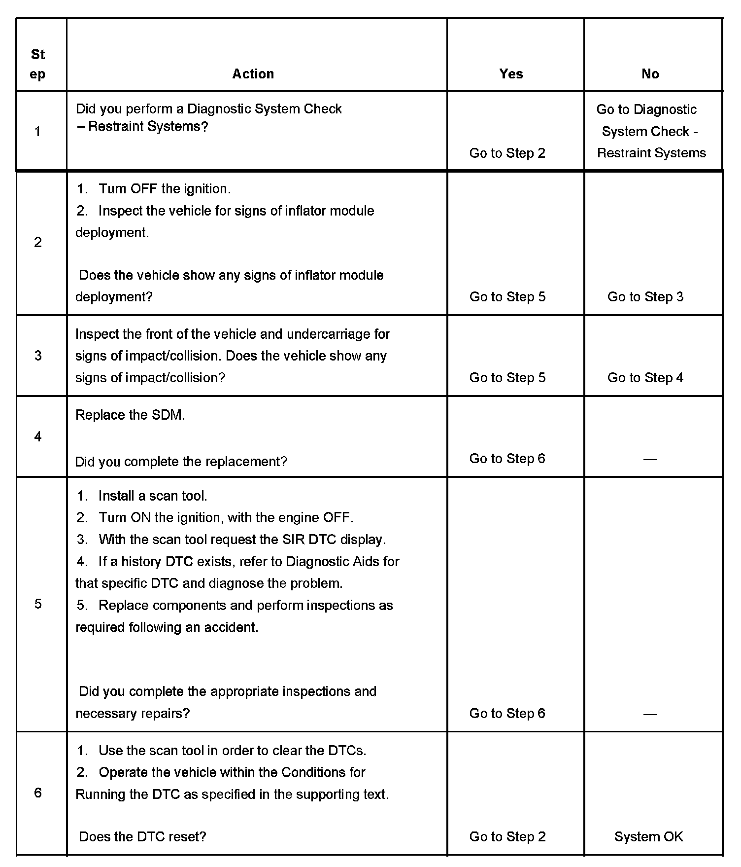DTC B0051 is a latched code which cannot be cleared. Replace the SDM after following the instructions in the diagnostic table.