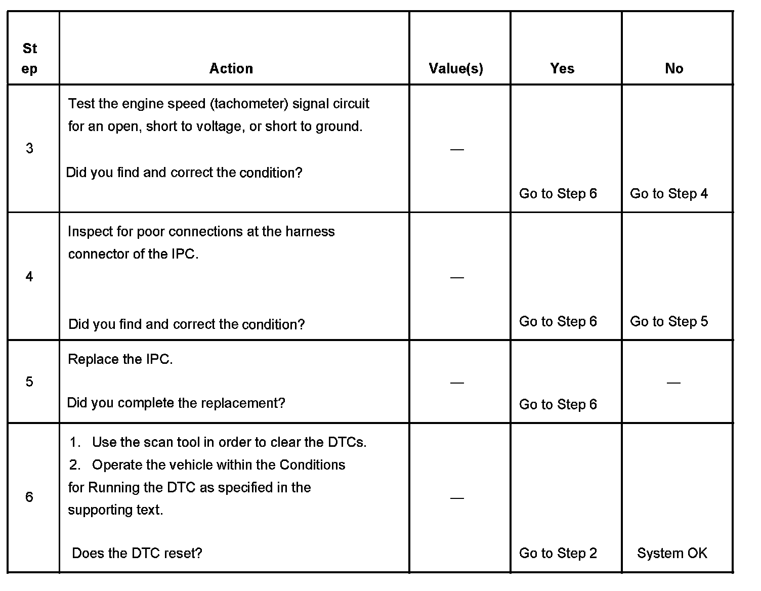 The number(s) below refer to the step number(s) on the diagnostic table.