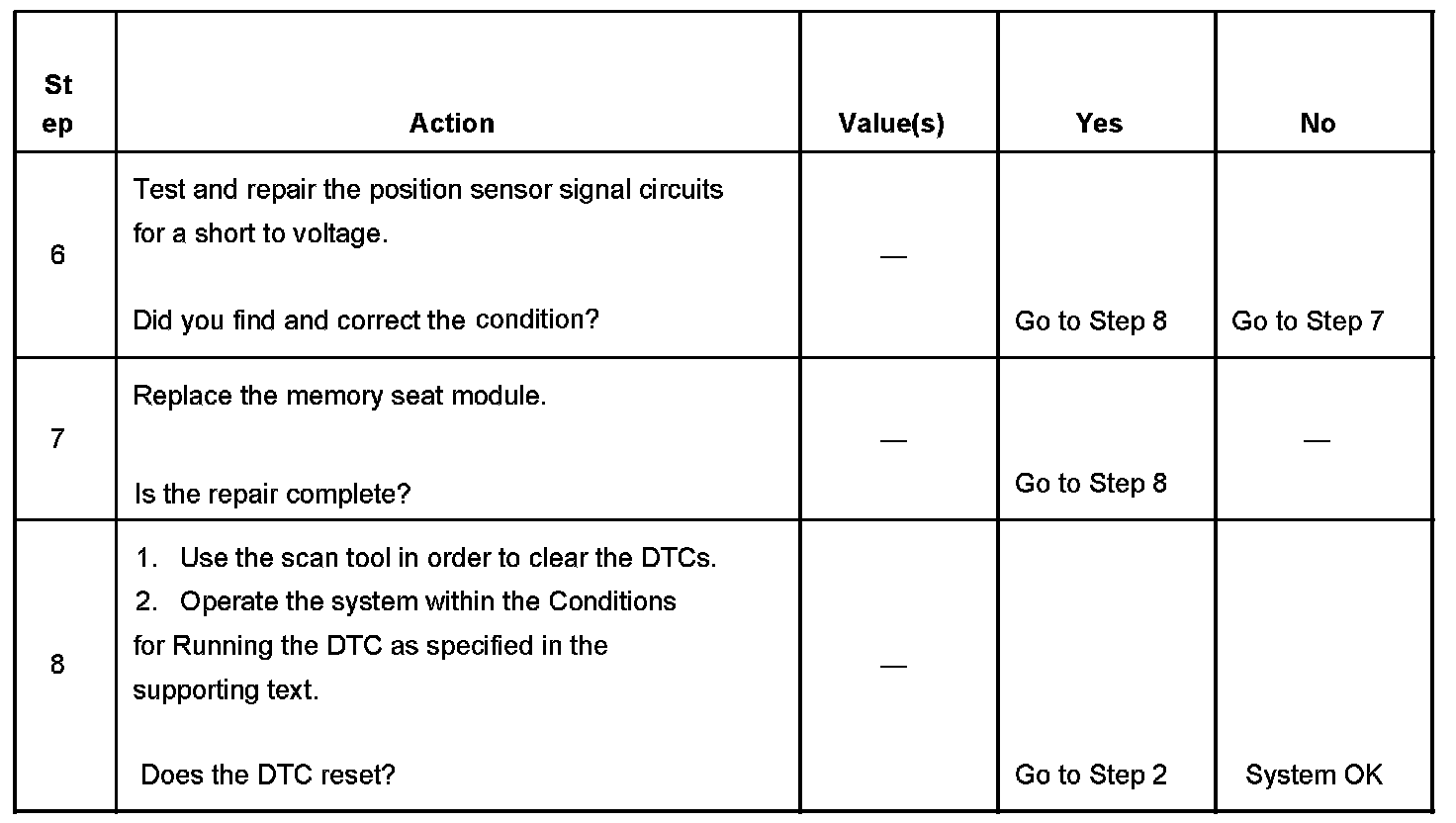 - The memory seat module detects the position sensor 5 volt reference circuit under 4.0 volts or over 5.2 volts.