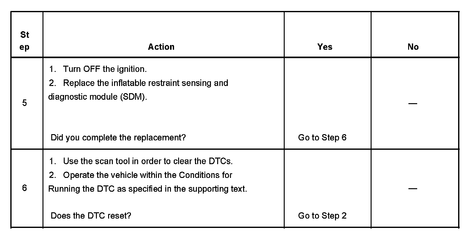 CIRCUIT DESCRIPTIONWhen the ignition is turned ON, the inflatable restraint sensing and diagnostic module (SDM) compares the restraints ID that is stored in the SDM to the restraints ID that is stored in the body control module (BCM). The restraints ID that is being compared contains the last four digits of the SDM part number. Also, the VIN that is stored in the SDM is compared to the VIN that is stored in the powertrain control module (PCM). For more detailed information concerning the Class 2 data lines, refer to Data Link Communications Description and Operation in Data Link Communications.