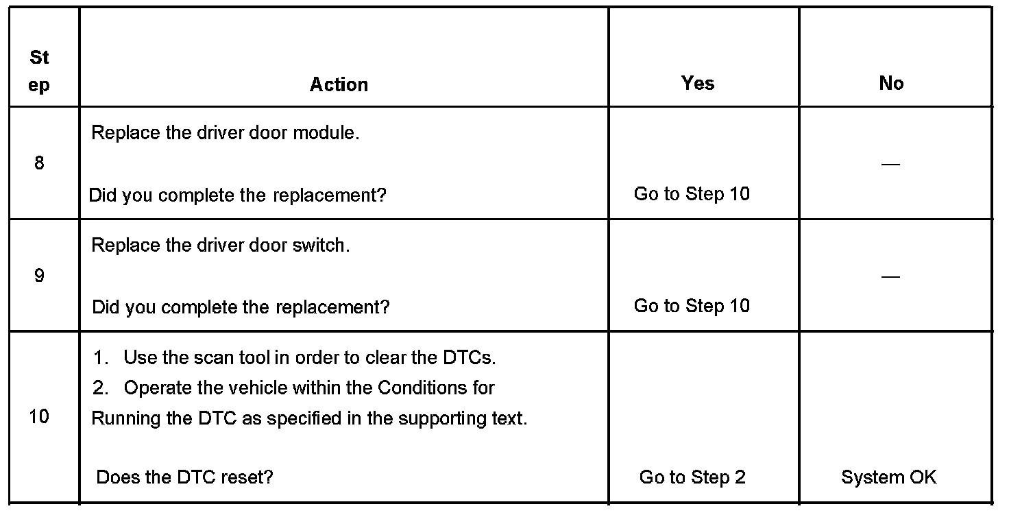 - Stores a history DTC B2222 or B2224 in DDM memory.