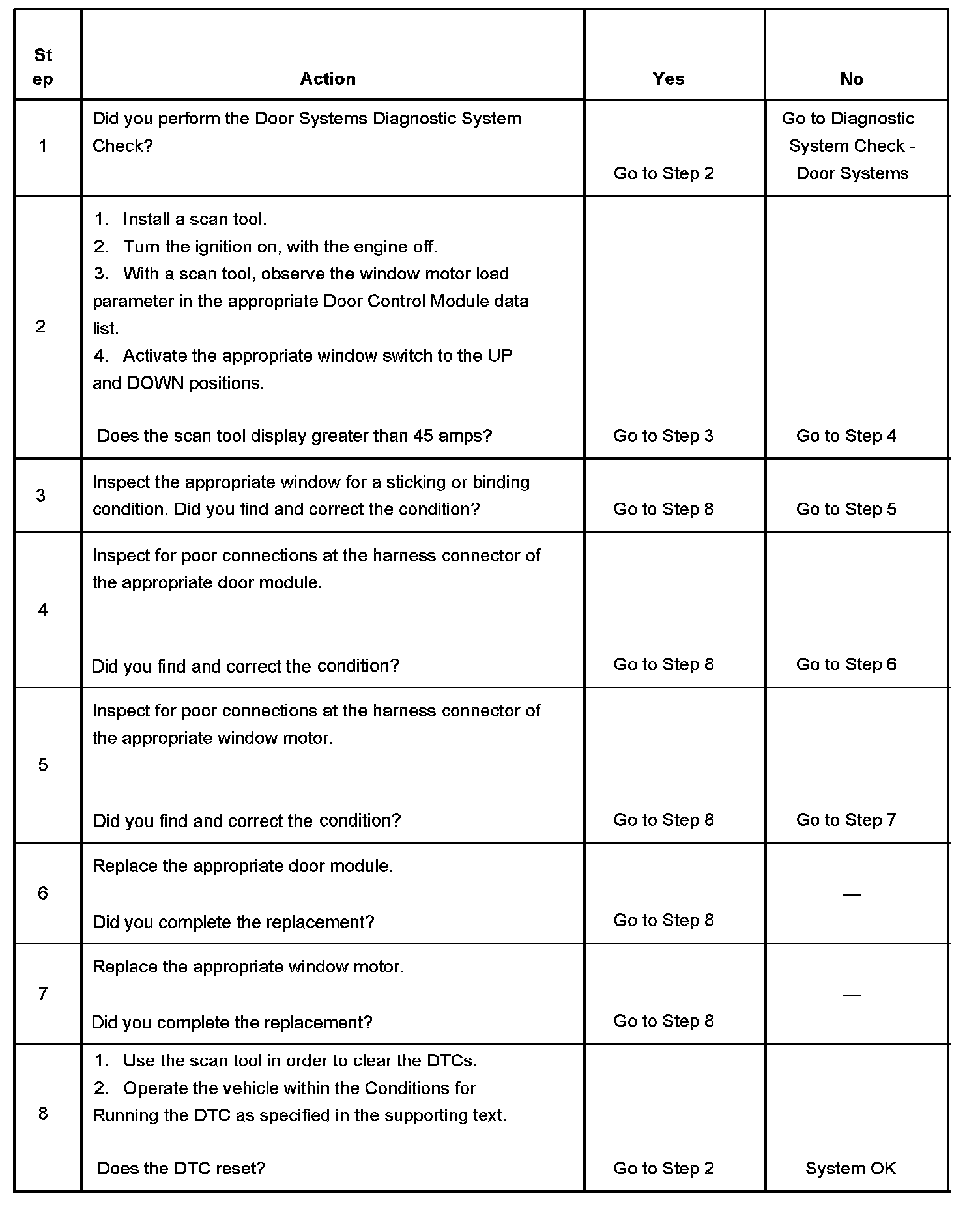 - The DDM or PDM no longer detects current draw in a window motor control circuit greater than 45 amperes for longer than 1 second, and: