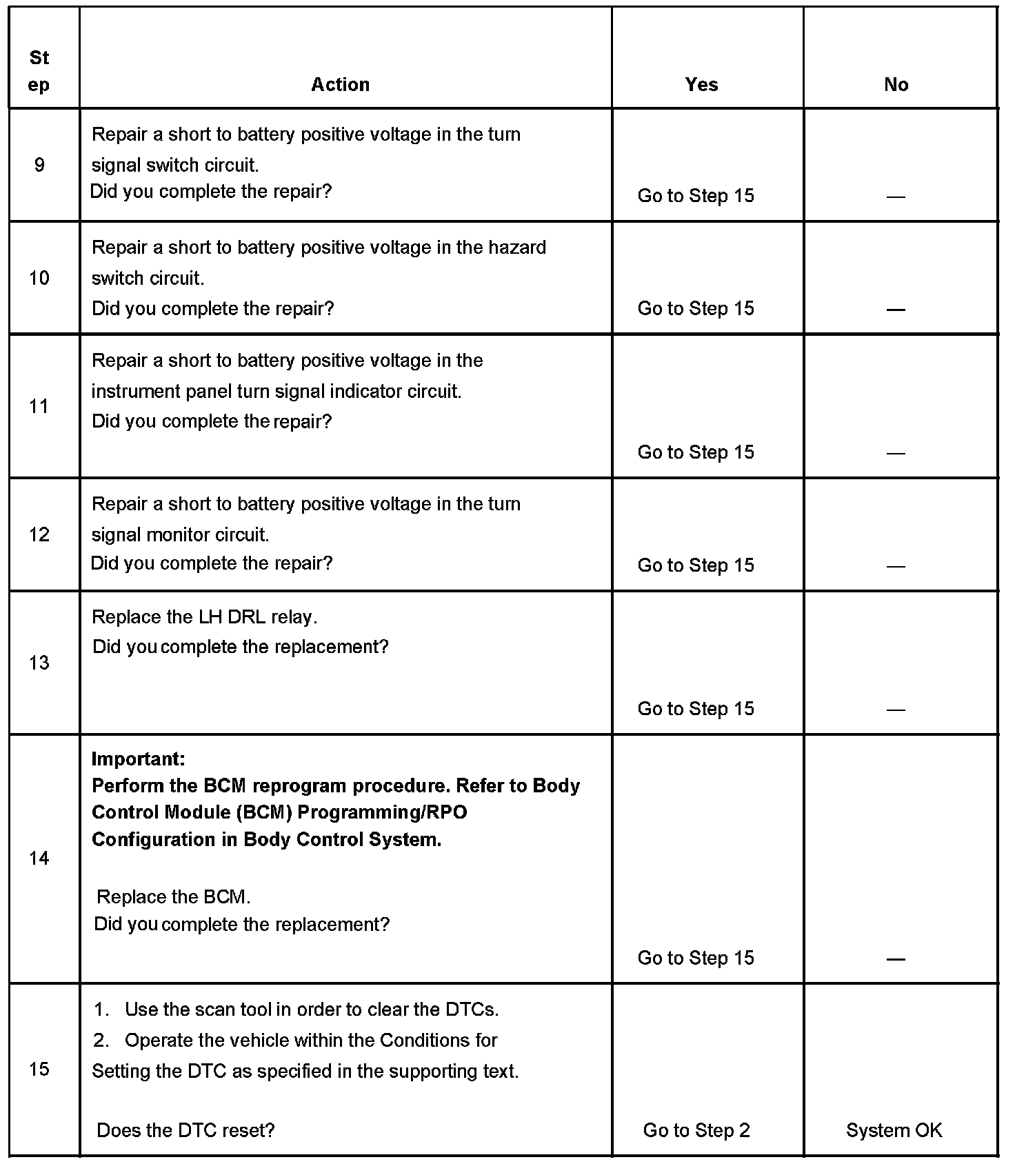 - The BCM needs to detect voltage oscillations on the LH turn signal monitor circuit in order to de-energize the LH DRL relay. If the BCM detects continuous voltage on the LH turn signal monitor circuit, the BCM interprets this as a short to battery positive voltage. The BCM will continue with normal DRL operation, and the LF turn signal will remain inoperative.