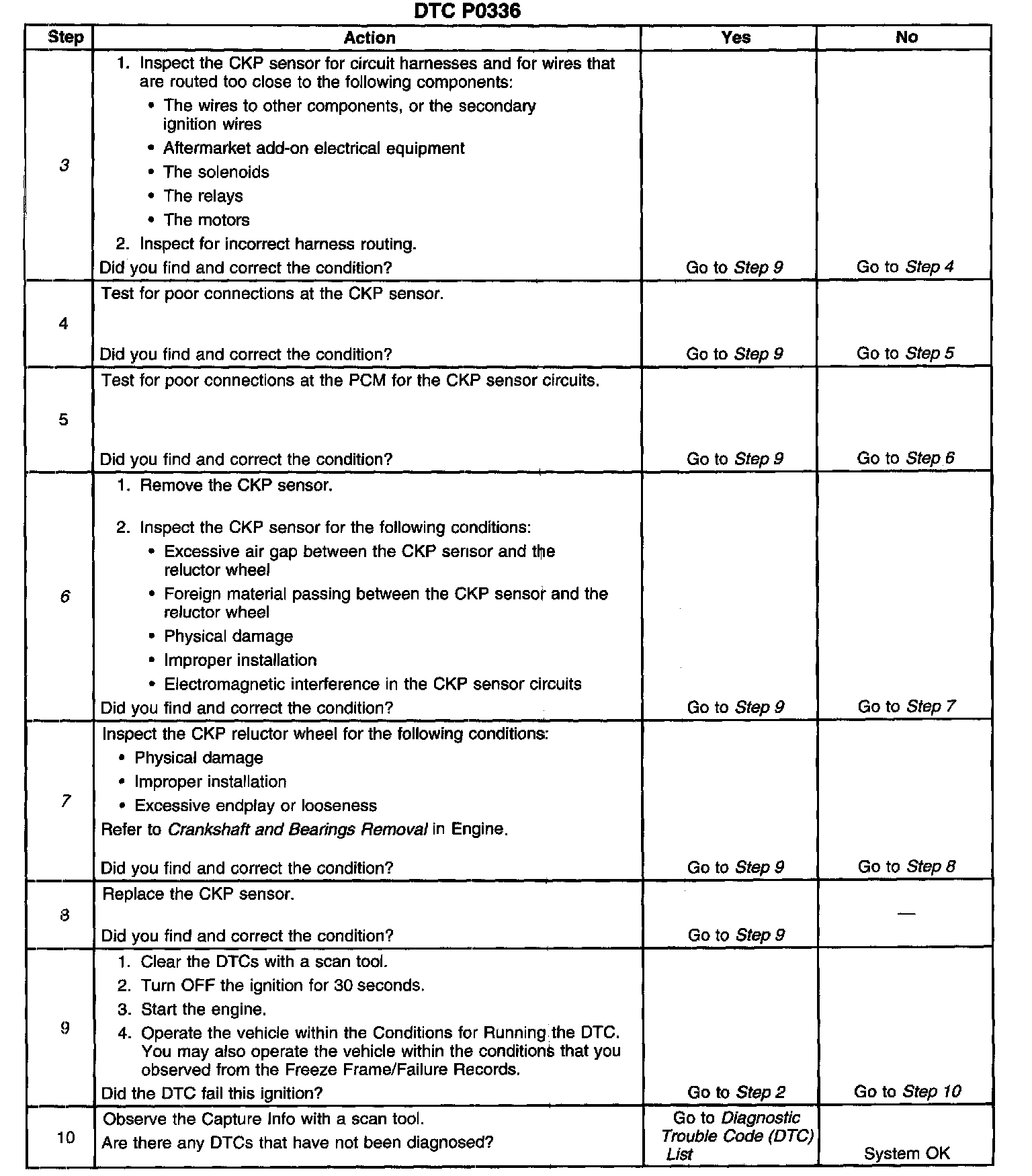 6. Vertical lines across the face of the sensor may indicate foreign material passing between the CKP sensor and the reluctor wheel. Lines which are not vertical across the face of the sensor may indicate a crack in the CKP sensor. Either of these conditions will cause this DTC to set.