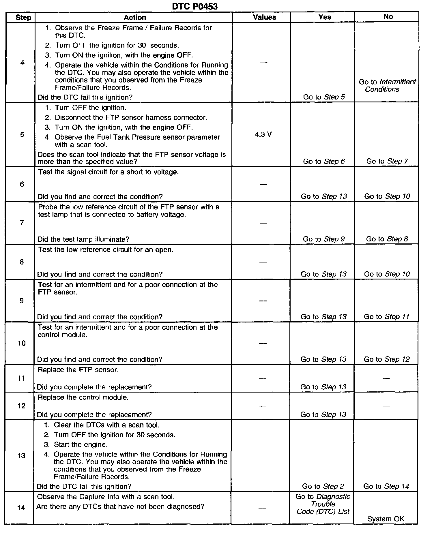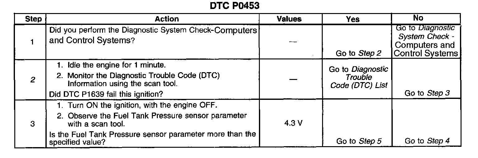 - The fuel tank pressure (FTP) sensor voltage is more than 4.9 volts.