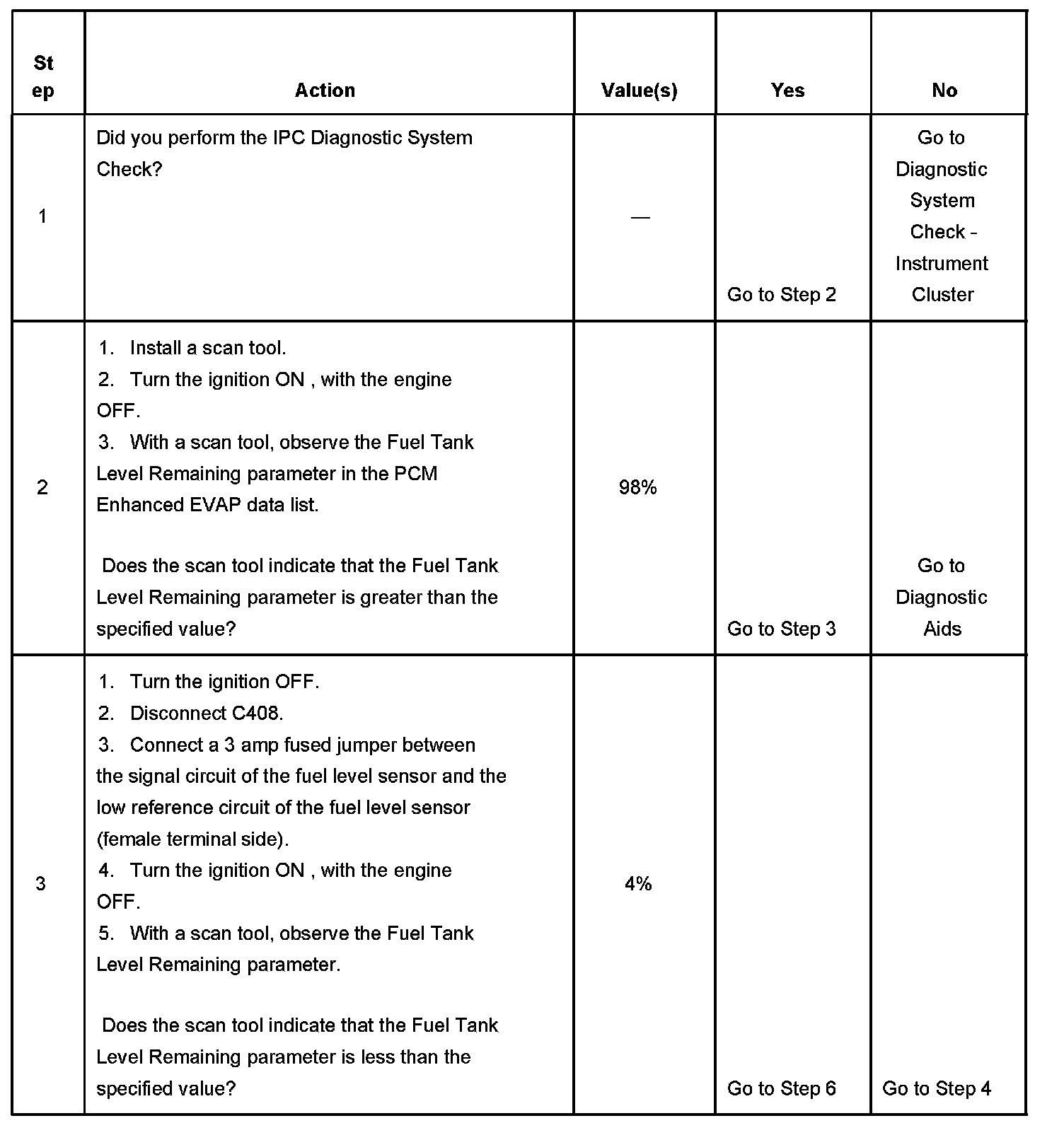 The PCM uses inputs from the fuel level sensor to calculate the total fuel remaining in the fuel tanks. This information is then sent to the IPC via the class 2 serial data circuit.