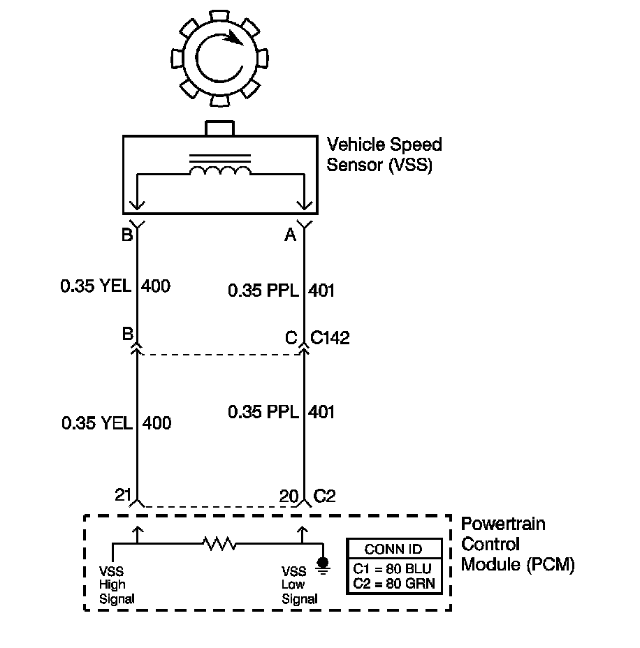 The vehicle speed sensor (VSS) assembly provides vehicle speed information to the powertrain control module (PCM). The VSS assembly is a permanent magnet generator. The VSS produces an AC voltage as rotor teeth on the differential ring gear pass through the sensor's magnetic field. The AC voltage level and the number of pulses increase as the speed of the vehicle increases. The PCM converts the AC voltage to vehicle speed. The PCM uses the vehicle speed signal to determine shift timing and torque converter clutch (TCC) scheduling.