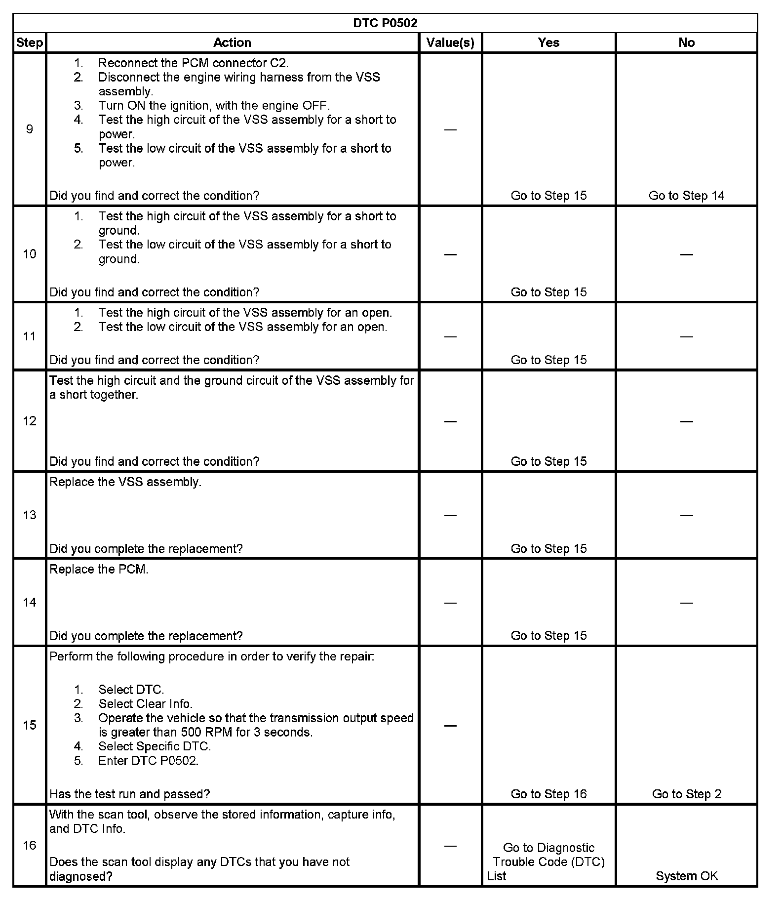DTC P0502Test 1-8: