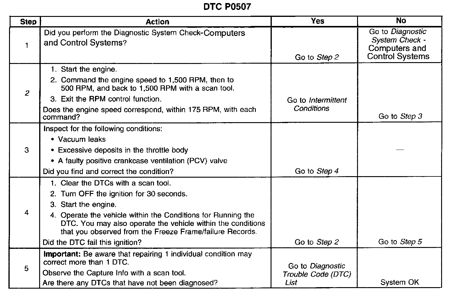 - The actual idle speed is approximately 150 RPM lower than or 100 RPM greater than the desired idle speed.