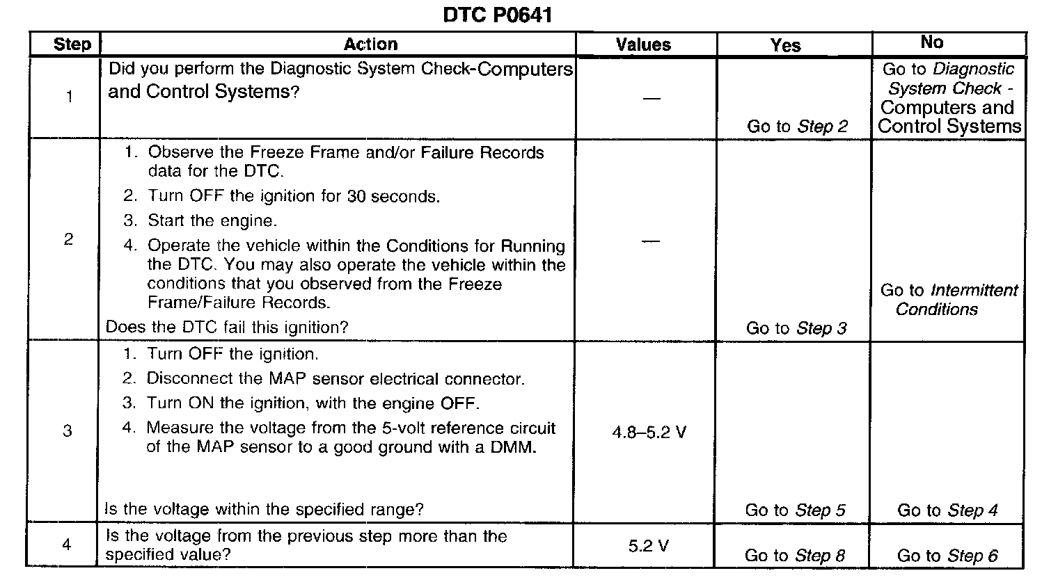These 5-volt reference circuits are independent of each other outside the PCM, but are bussed together inside the PCM Therefore a circuit condition on one sensor 5-volt reference circuit may affect the other sensor 5-volt reference circuits. The PCM monitors the voltage on the 5-volt reference circuit. If the PCM detects that the voltage is out of tolerance, DTC P0641 sets.