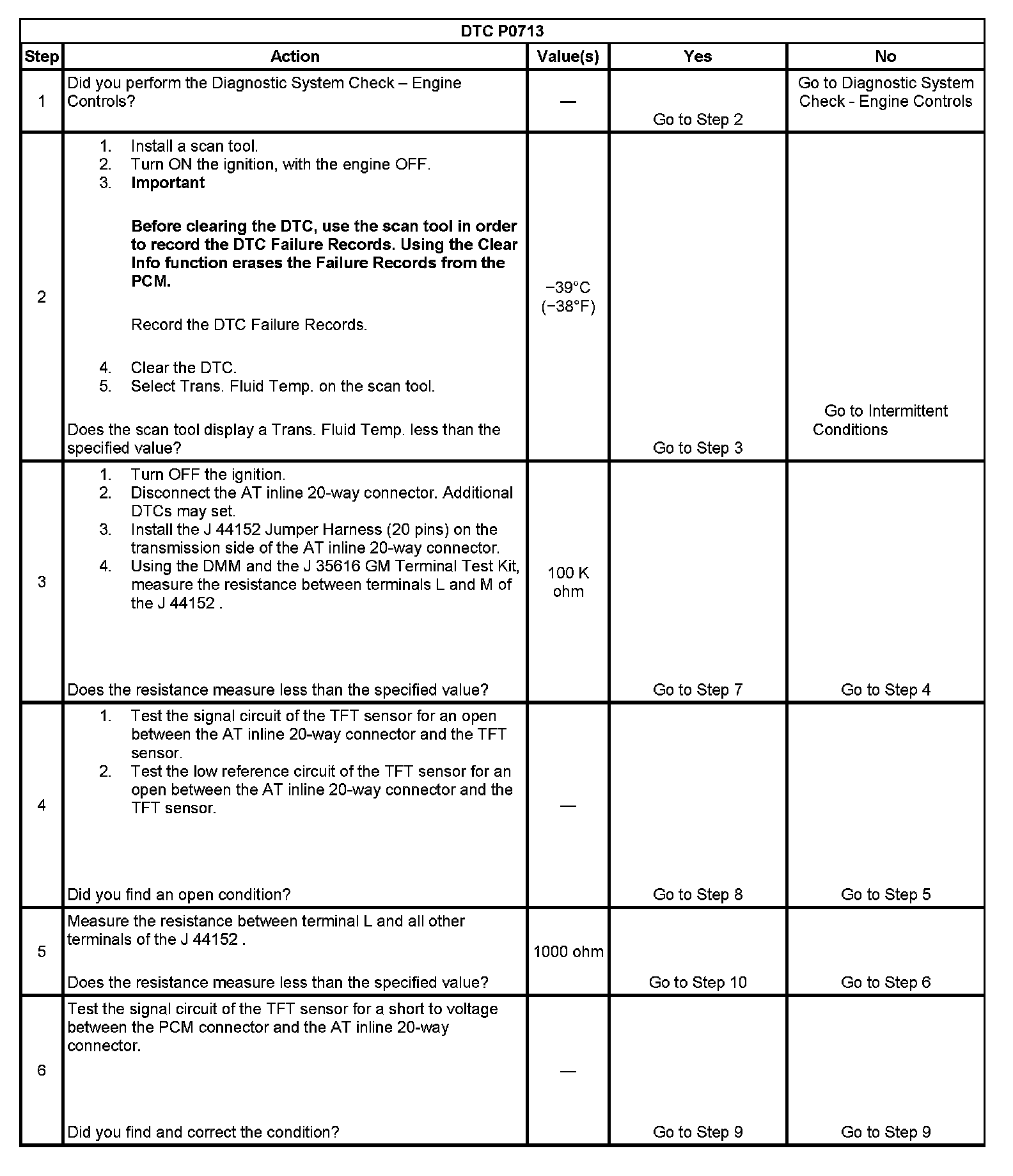 DTC P0713Test 1-6: