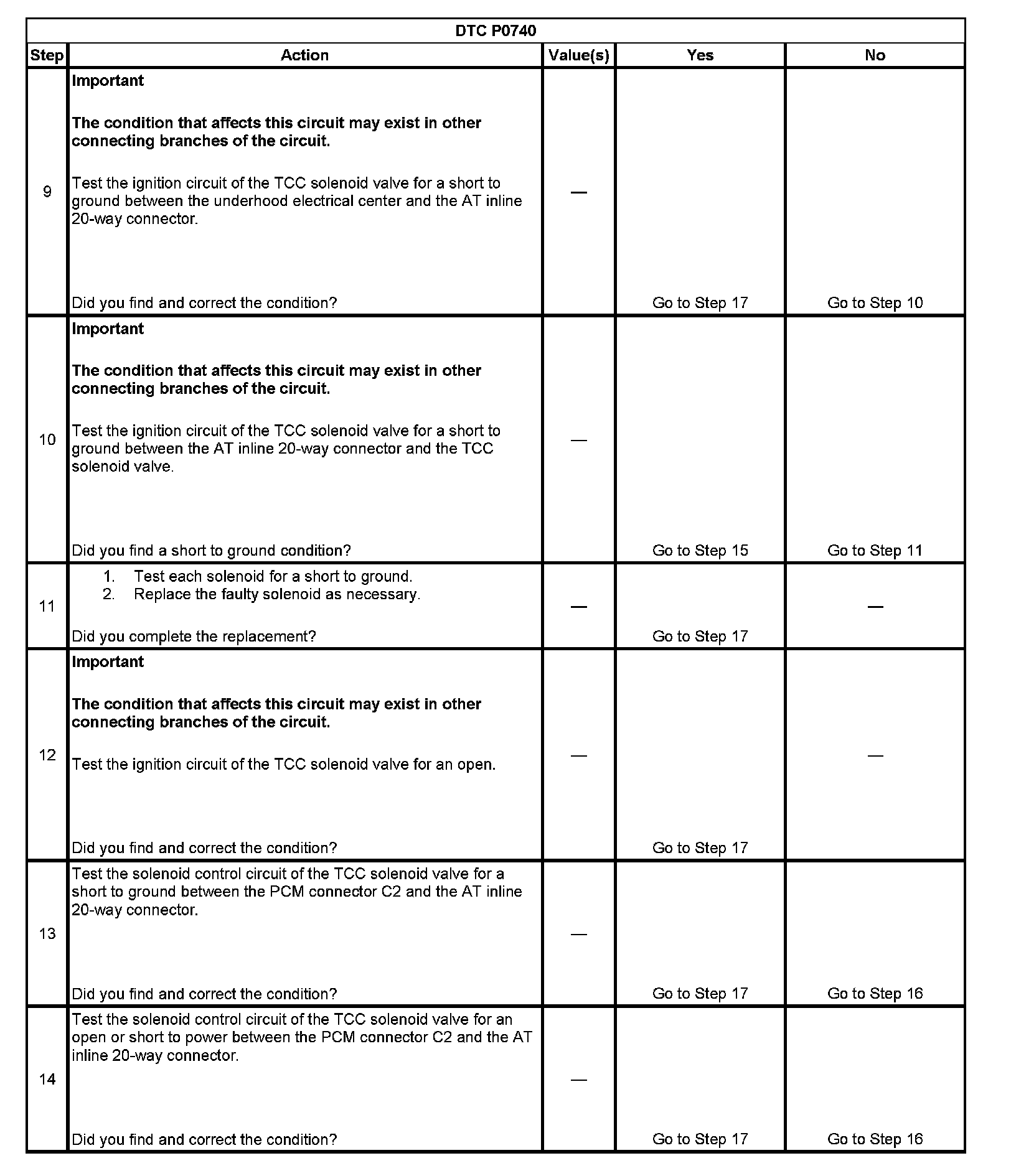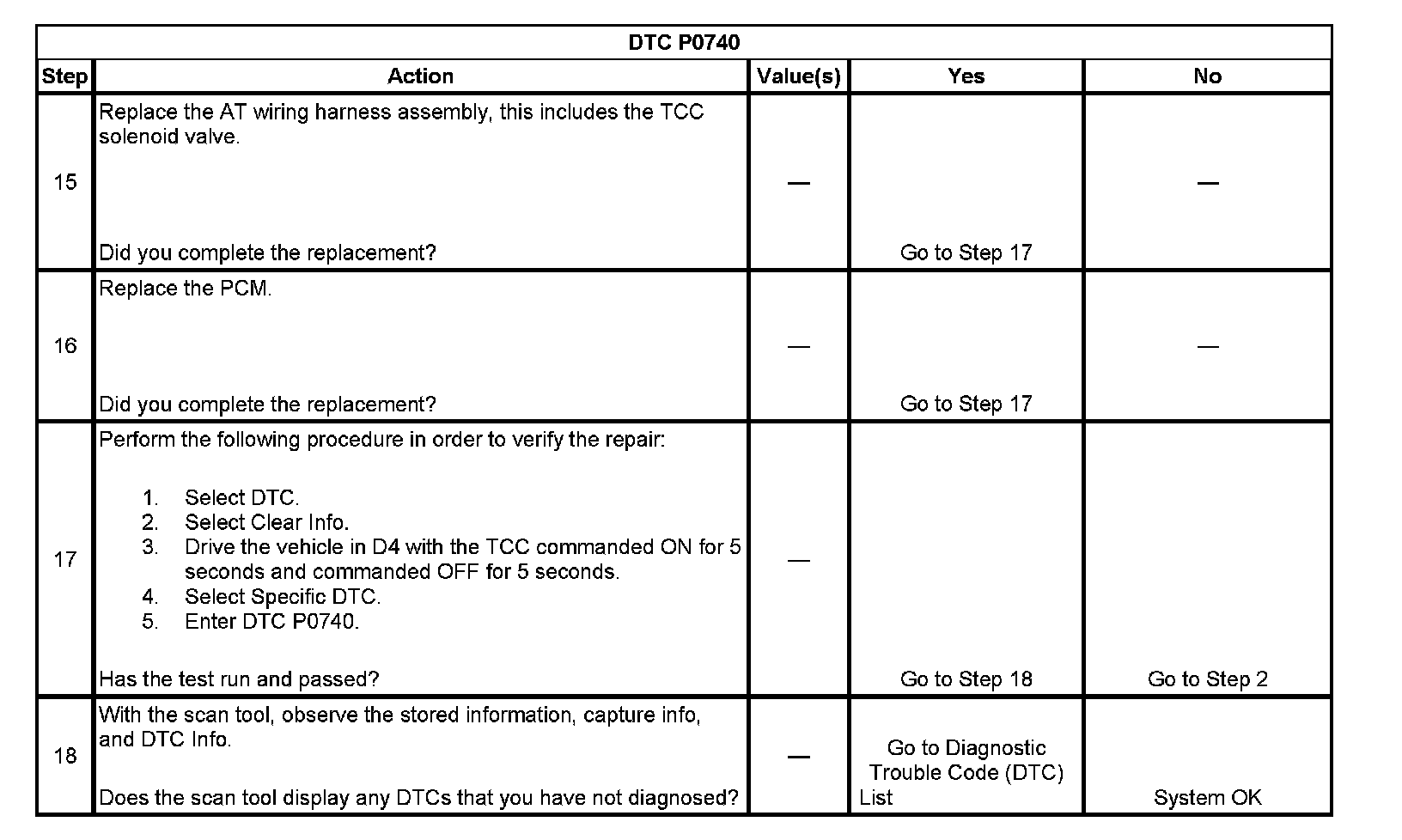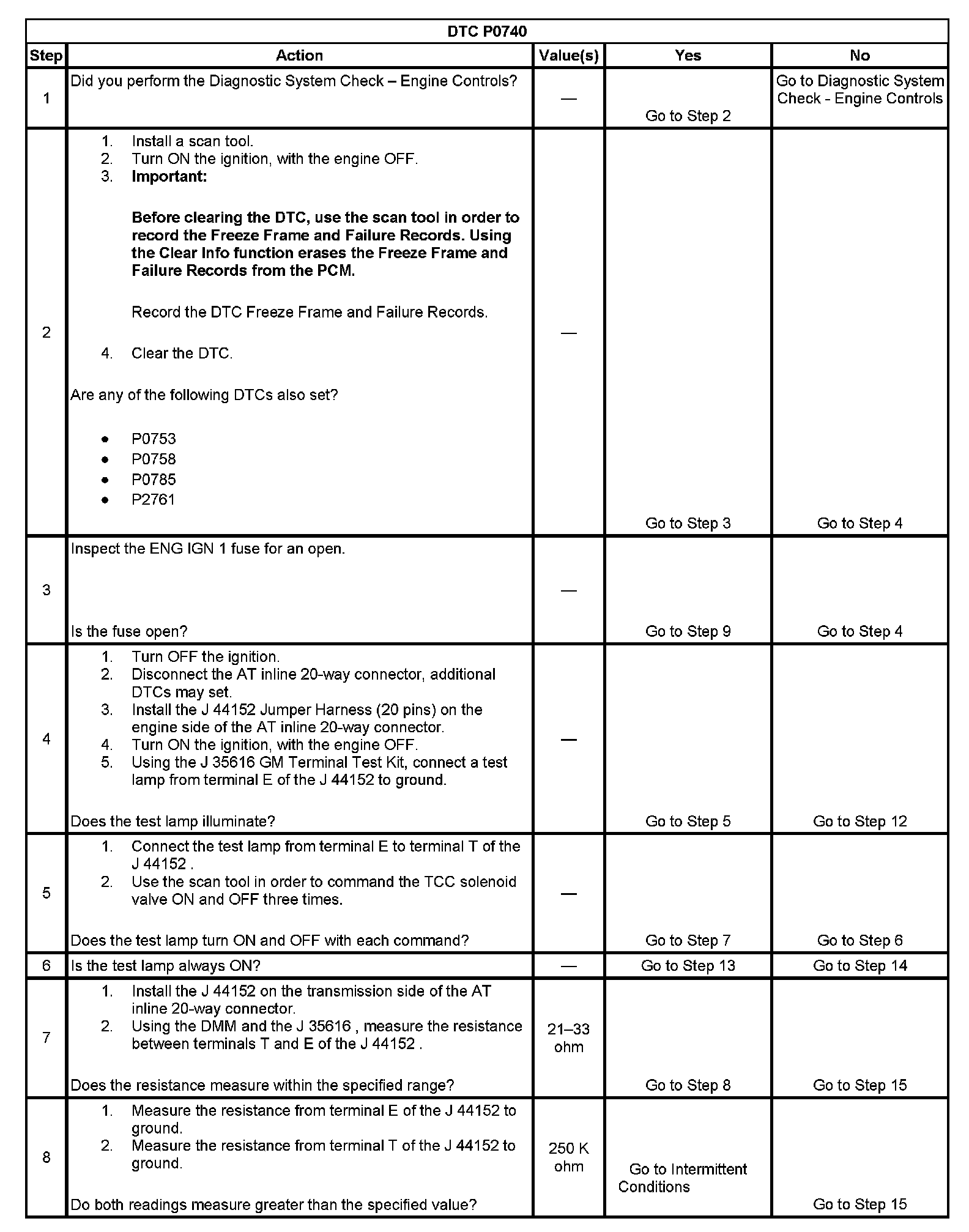 DTC P0740Test 1-8: