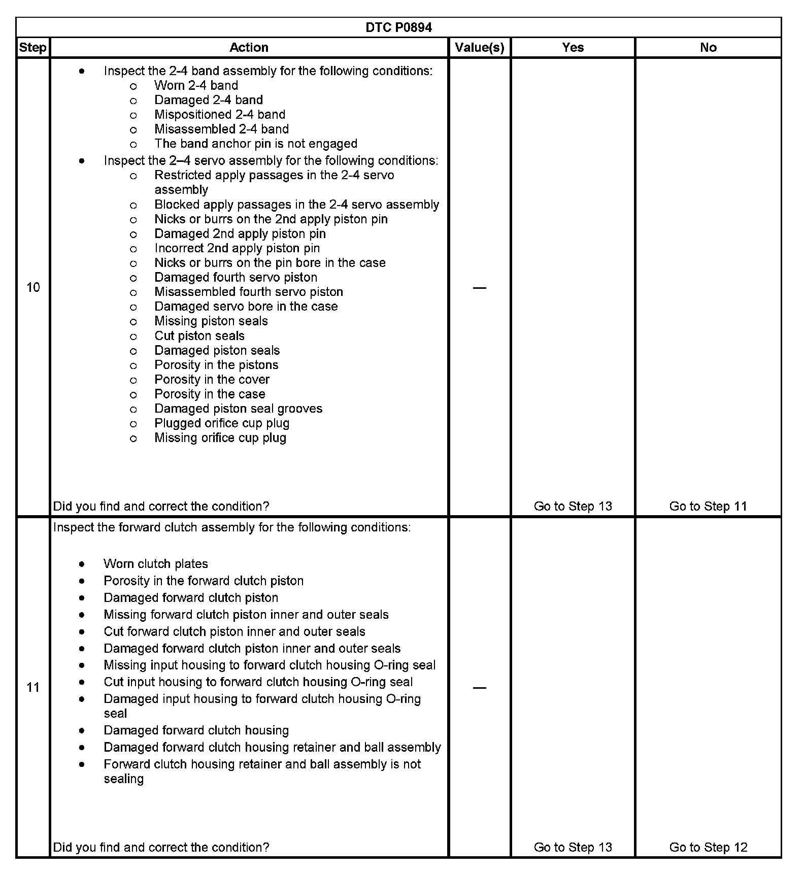 ^ The PCM stores DTC P0894 in PCM history during the second consecutive trip in which the Conditions for Setting the DTC are met.