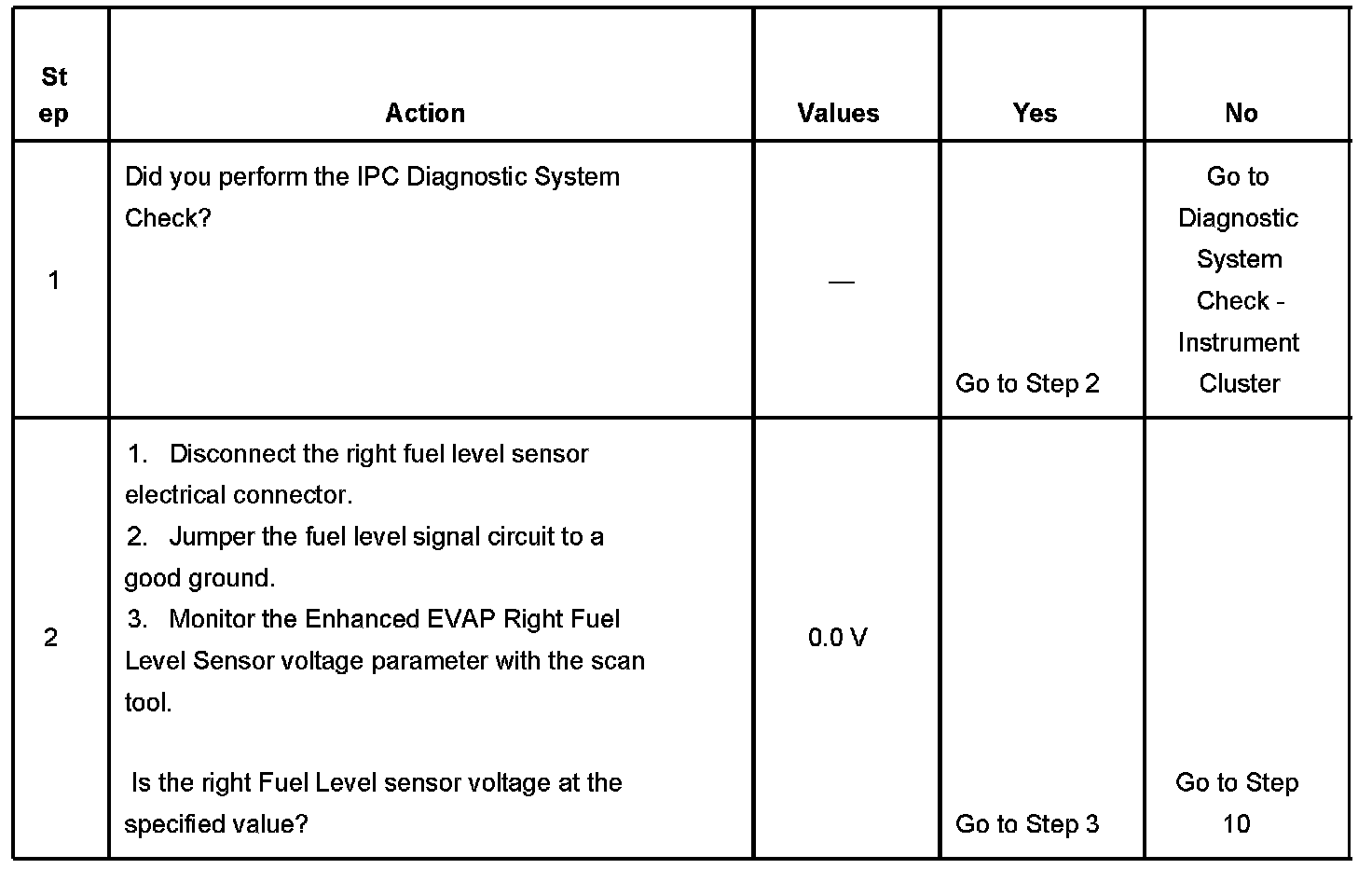 2. This step determines if a circuit condition is causing the fuel level signal to be at a fixed value.