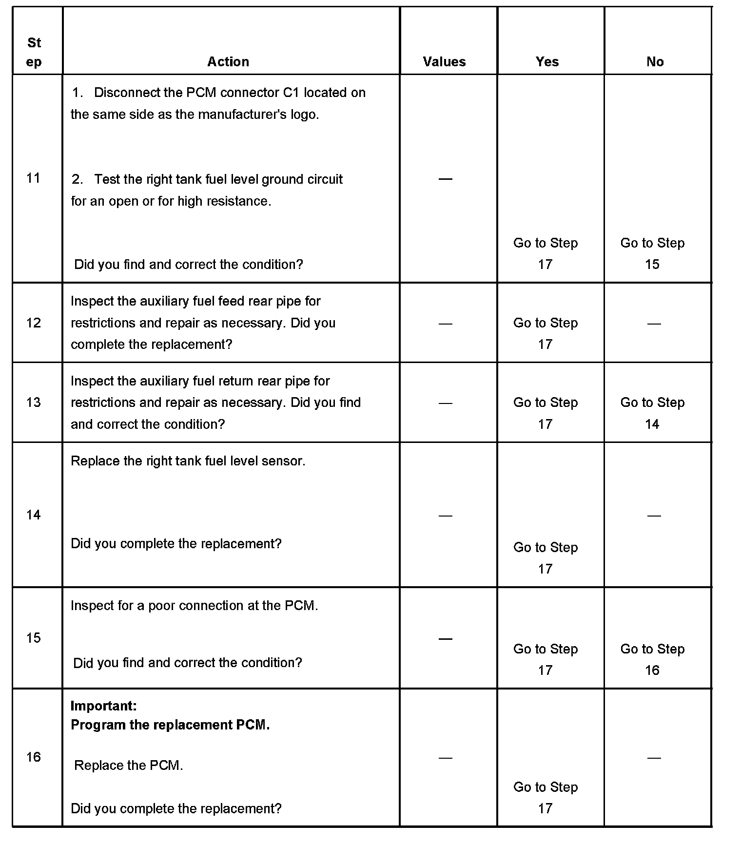 - The PCM does not detect that the fuel level in the right fuel tank has not changed by at least 3.0 liters (0.80 gallons).