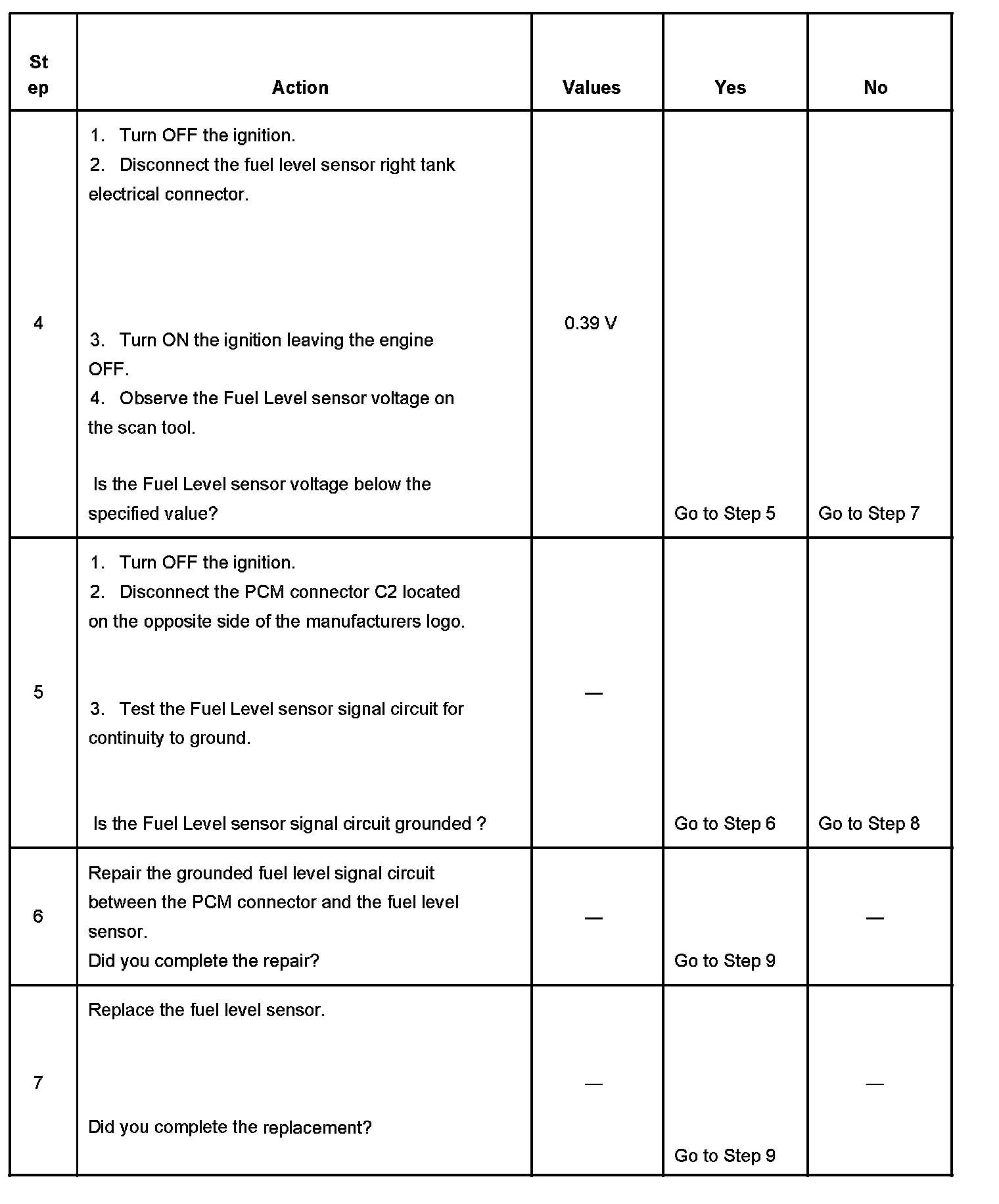 The voltages in the Fuel Level Conversion Table are approximate values. Use this table to aid in diagnosis.