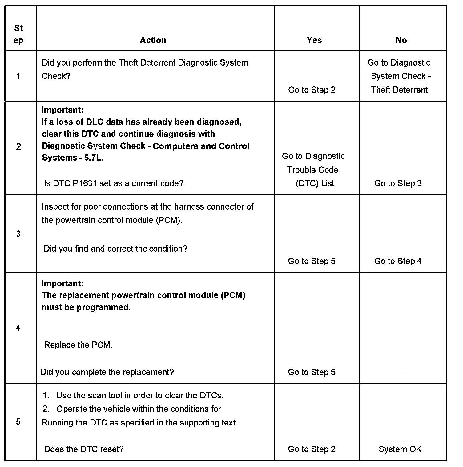 The body control module (BCM) produces the theft deterrent crank relay and fuel enable signal when ignition is ON and the proper ignition code voltage value is detected. The powertrain control module (PCM) monitors the fuel enable signal during crank. If the proper signal is present on the Class 2 Serial Data Circuit, the PCM enables the fuel delivery in order to allow the engine to start. If the PCM determines that the fuel enable signal is not present or incorrect while the engine is running, DTC P1626 is set. The engine continues to start and run as long as DTC P1626 is stored. If the problem affects inputs to the VTD signal, the starter motor may be disabled.