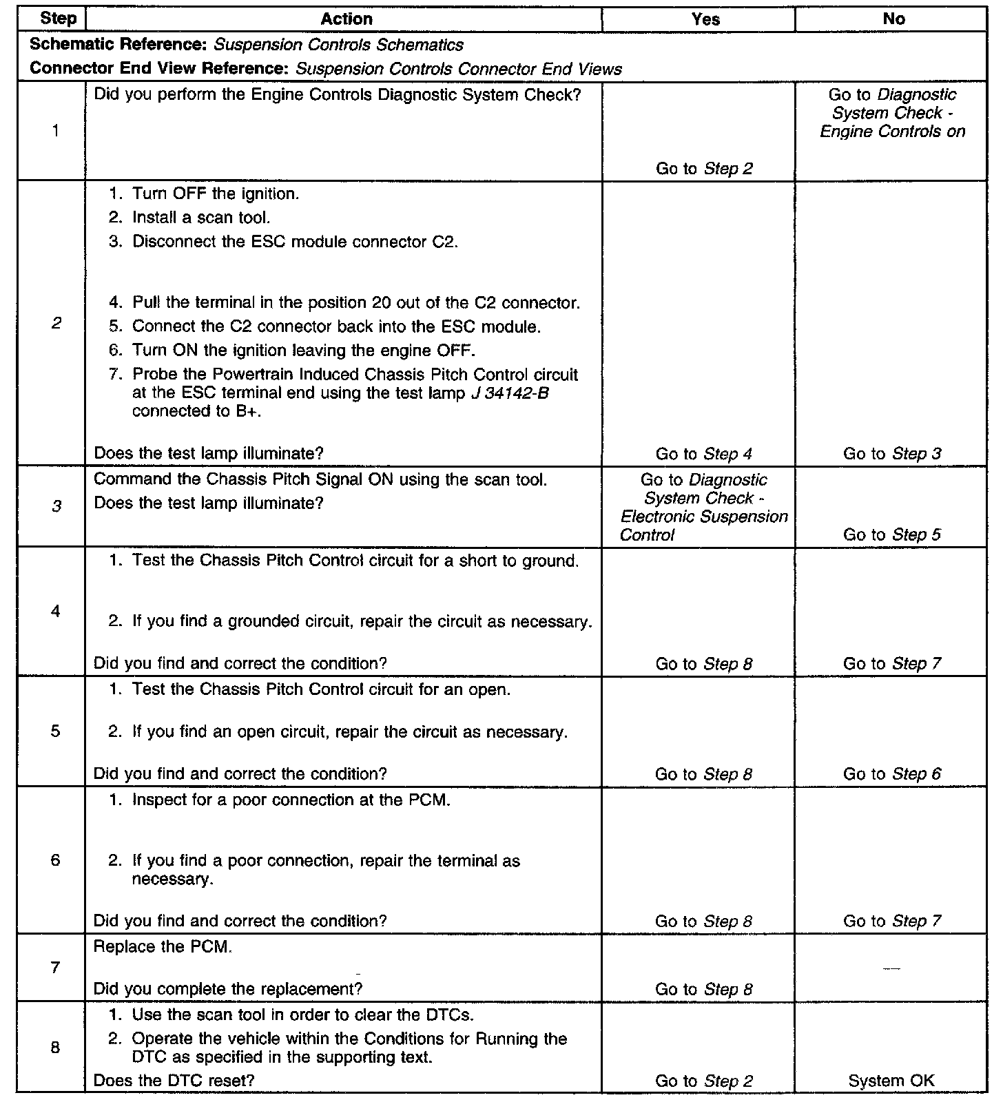 2. This step determines if the Powertrain Induced Chassis Pitch control circuit is shorted to ground.