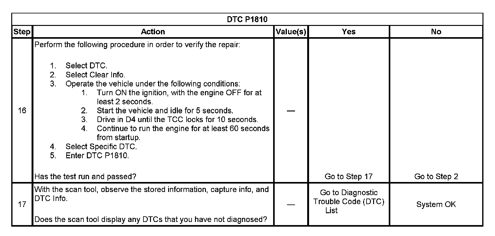 ^ The PCM stores DTC P1810 in PCM history during the second consecutive trip in which the Conditions for Setting the DTC are met.