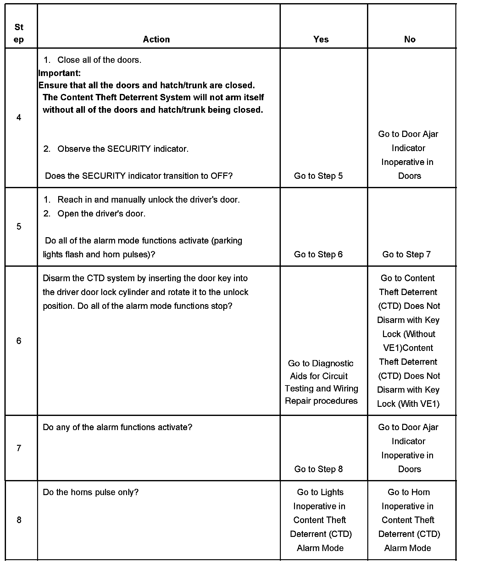 Alarm Mode Inoperative - Content Theft Deterrent (CTD)