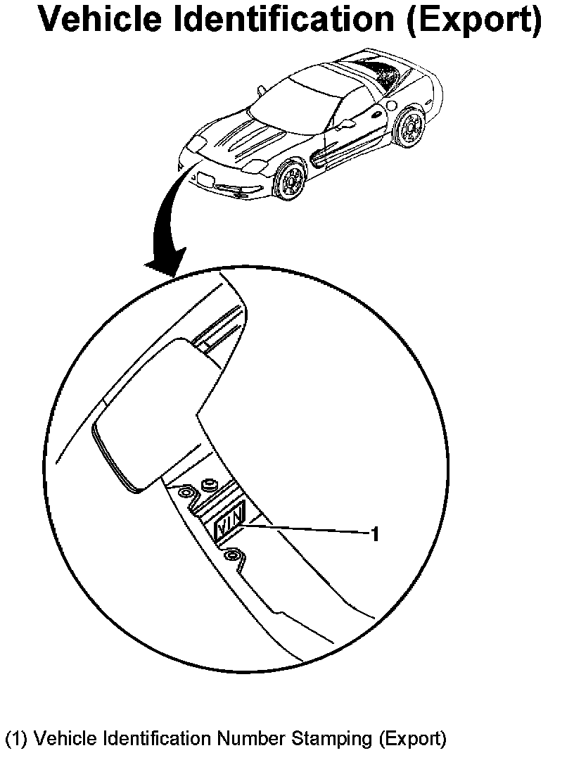 Export vehicles have the vehicle identification number (VIN) stamped onto the vehicle frame rail, as shown.