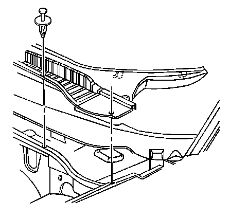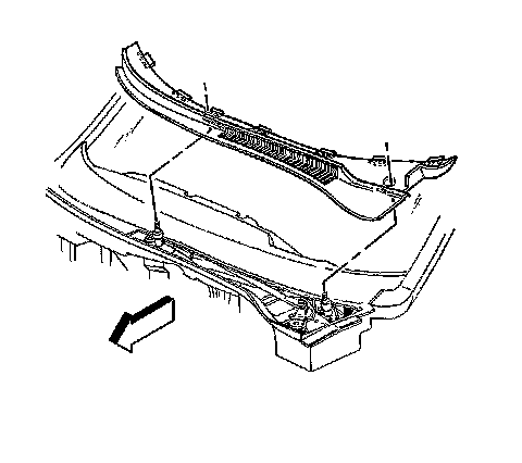 Notice: Be sure to follow the service procedure when removing the air inlet grille panel. Failure to follow service procedure may cause damage to the air inlet grille panel or the windshield.