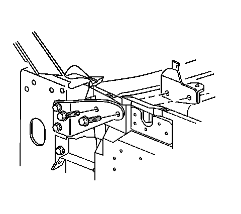 3. Remove the bolts attaching the hood stop bracket to the hinge pillar.