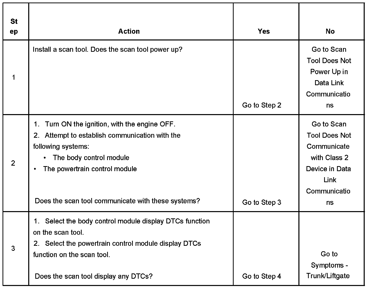 2. Lack of communication may be due to a partial malfunction of the class 2 serial data circuit or due to a total malfunction of the class 2 serial data circuit. The specified procedure will determine the particular condition.