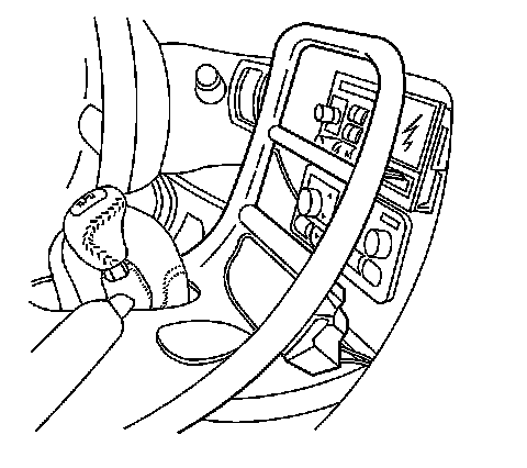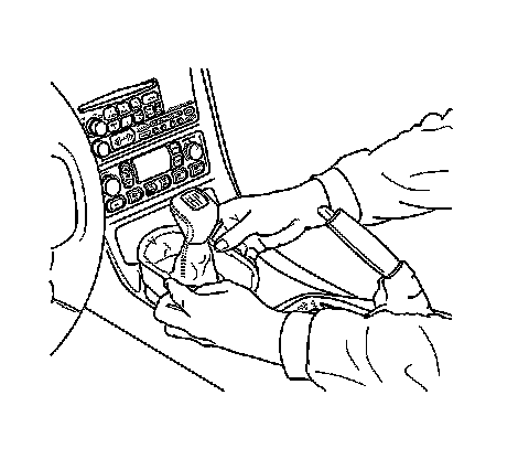 4. Grasp the shift control boot (M/T) and apply light pressure in toward the shift control lever, to begin to release the shift boot retaining tabs from the instrument panel (IP) accessory trim plate.