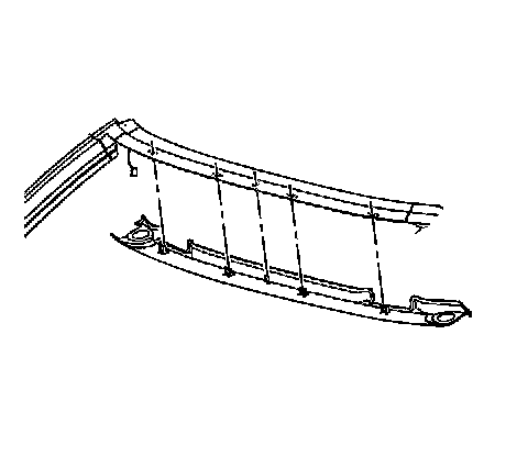 2. Position the upper garnish molding with its retainers to the holes in the windshield frame.
