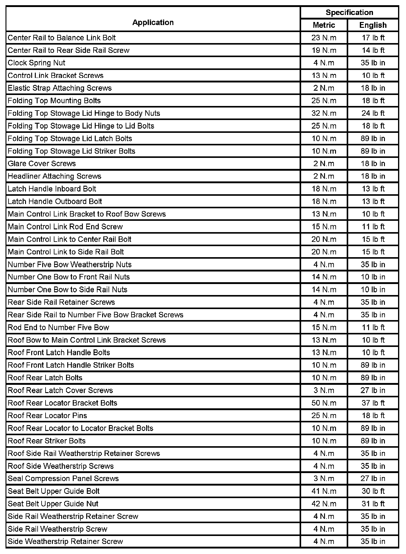 Fastener Tightening Specifications