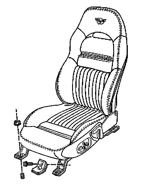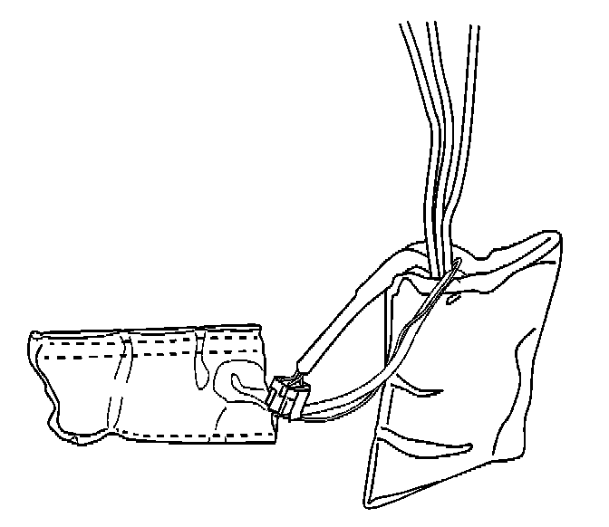 The lumbar pump and control module are separate units that are attached to each other by a wire harness and a hose. They are supplied and replaced as an assembly. The lumbar pump is contained in a vinyl pouch under the seat and is tie strapped to the seat adjuster torque tube. The attached control module is contained in a vinyl pouch and is secured with J strips to the bottom of the seat support springs. The service part is supplied with connector fittings and the air hoses are labeled #3, #4, and #5 to aid in assembly.
