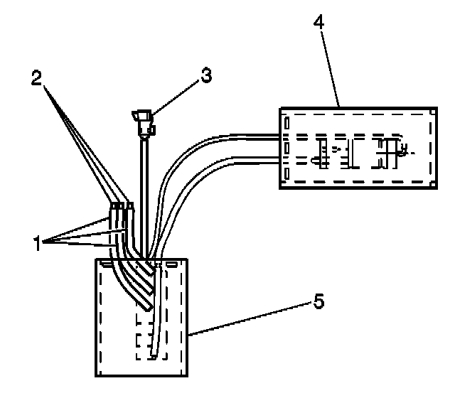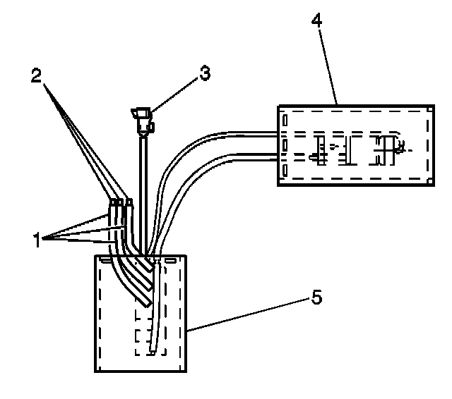 8. Cut the control module to bladder air hoses (1) 75 mm (3 in) from the control module (5).