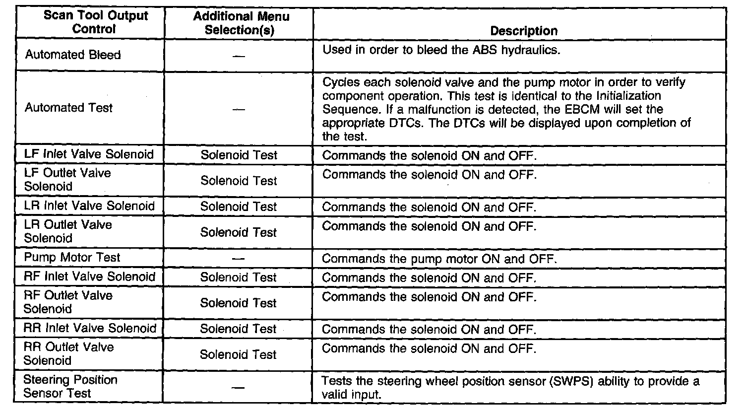 Scan Tool Output Controls